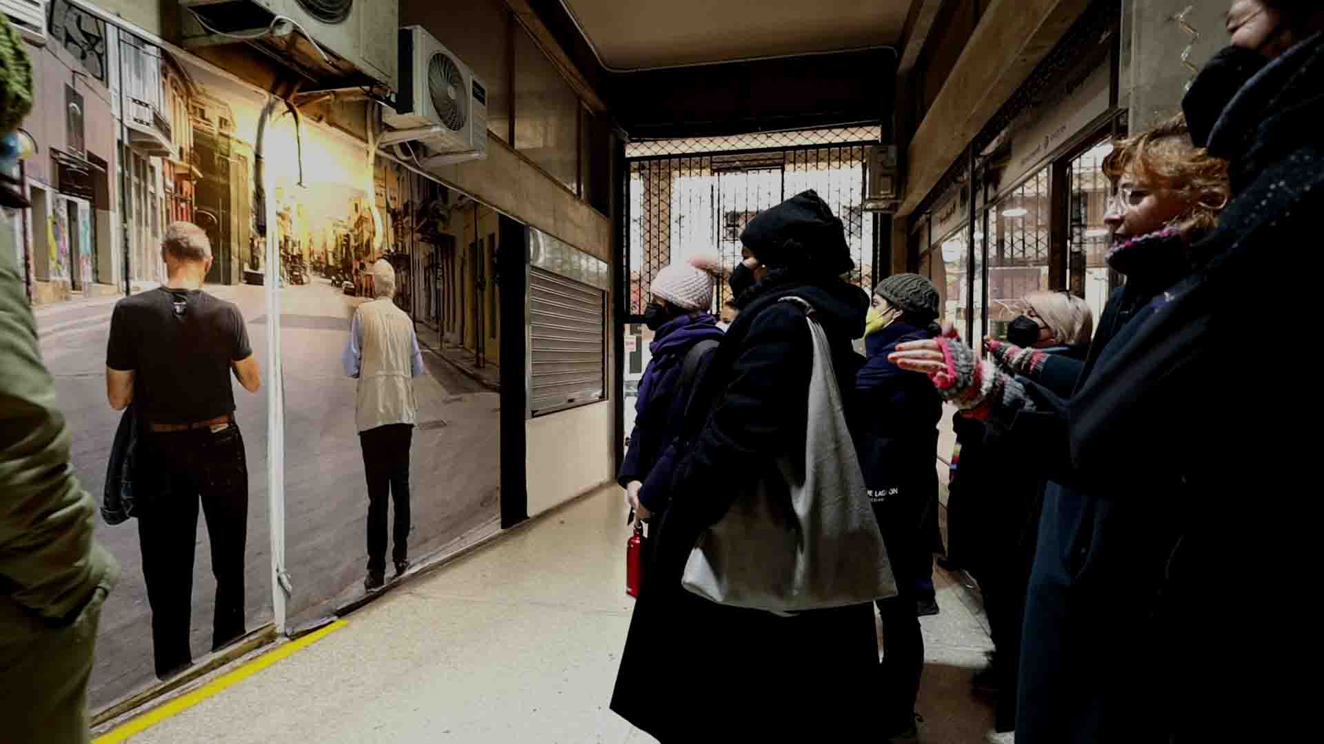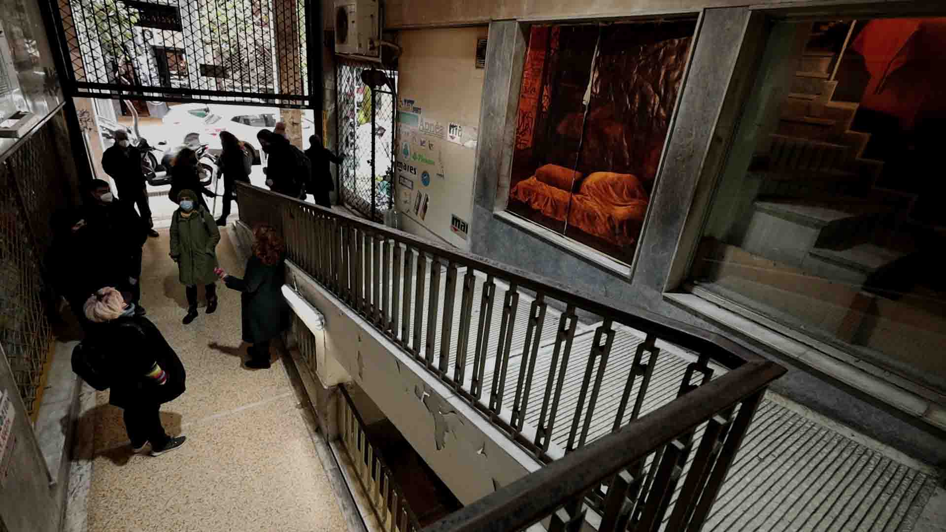 Αφού η αφίσα μας (βλ. Μέρος α’) τοποθετήθηκε σε καίρια σημεία της στοάς, ήμασταν σε αναμονή. Κανείς δεν έστειλε όμως το μέηλ που περιμέναμε. Αντιθέτως, οι άνθρωποι που συναντούσαμε εκεί άρχισαν να μας μιλάνε. Την περίοδο που η εγκατάσταση του Σίσυφου στήνονταν στη στοά της Αριστείδου, ξεκίνησα να επισκέπτομαι τον χώρο καθημερινά και να συζητάω με τους ανθρώπους που συναντούσα. Άλλοι ερχόντουσαν μόνο το πρωί, άλλες μόνο το απόγευμα κι έτσι πήγαινα πολλές διαφορετικές ώρες, παρατηρώντας παράλληλα πώς άλλαζε η στοά – η υγρασία, η θερμοκρασία, το φως και η κινητικότητα στο χώρο άλλαζαν δραματικά απ’ το πρωί ως το βράδυ.